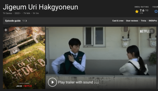 今回はNetflixで配信されている韓国ドラマ「今、私たちの学校は・・・」を紹介します。